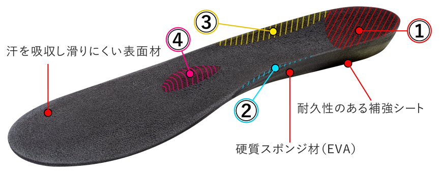 足にかかる圧力を分散させることができるので、疲労軽減の効果も見込めます。