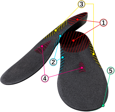 インソールの底面に角度をつける事で、下肢の軸の角度を調整する事が可能です。