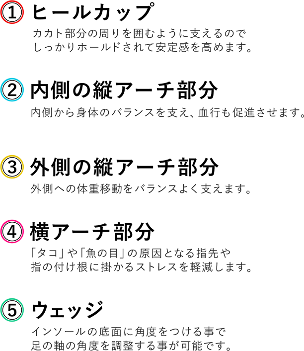 (パンプスやハイヒールは細身形状で形が合わず、使用時の足の状況がインソールの設計と異なるため)