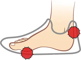 靴擦れやタコ、魚の目などの発生の原因になります。