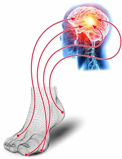 足裏が感知した情報を脳へと通達しています。